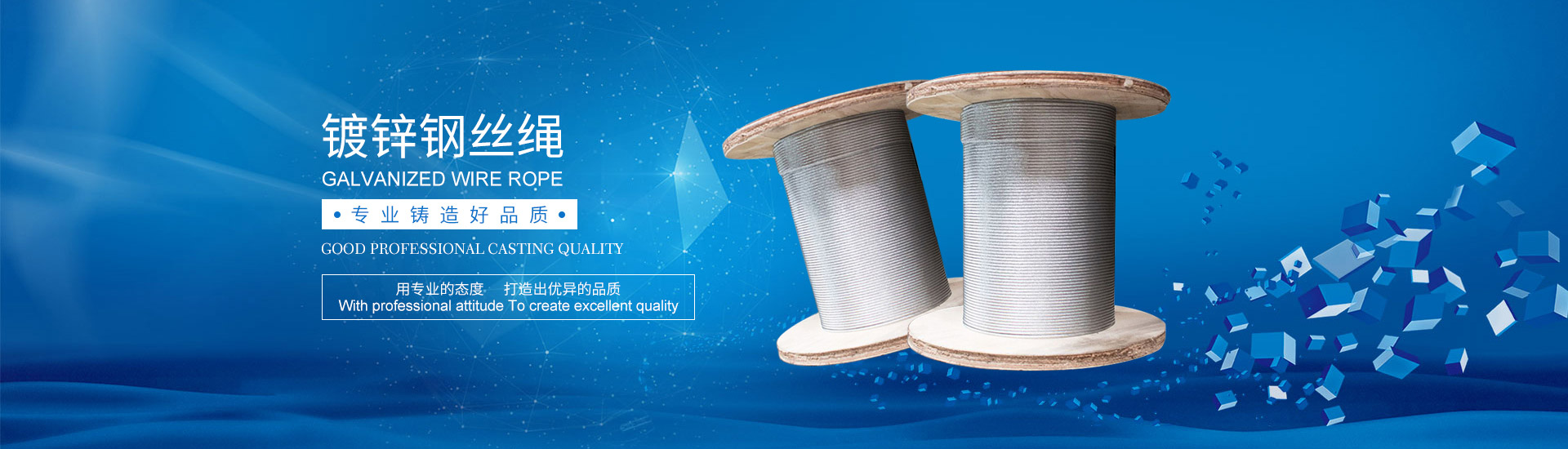 主要生產各種規格鍍鋅鋼絲繩、光面鋼絲繩、不銹鋼鋼絲繩、彈簧鋼絲繩、鍍鋅鋼絲、鍍銅鋼絲等